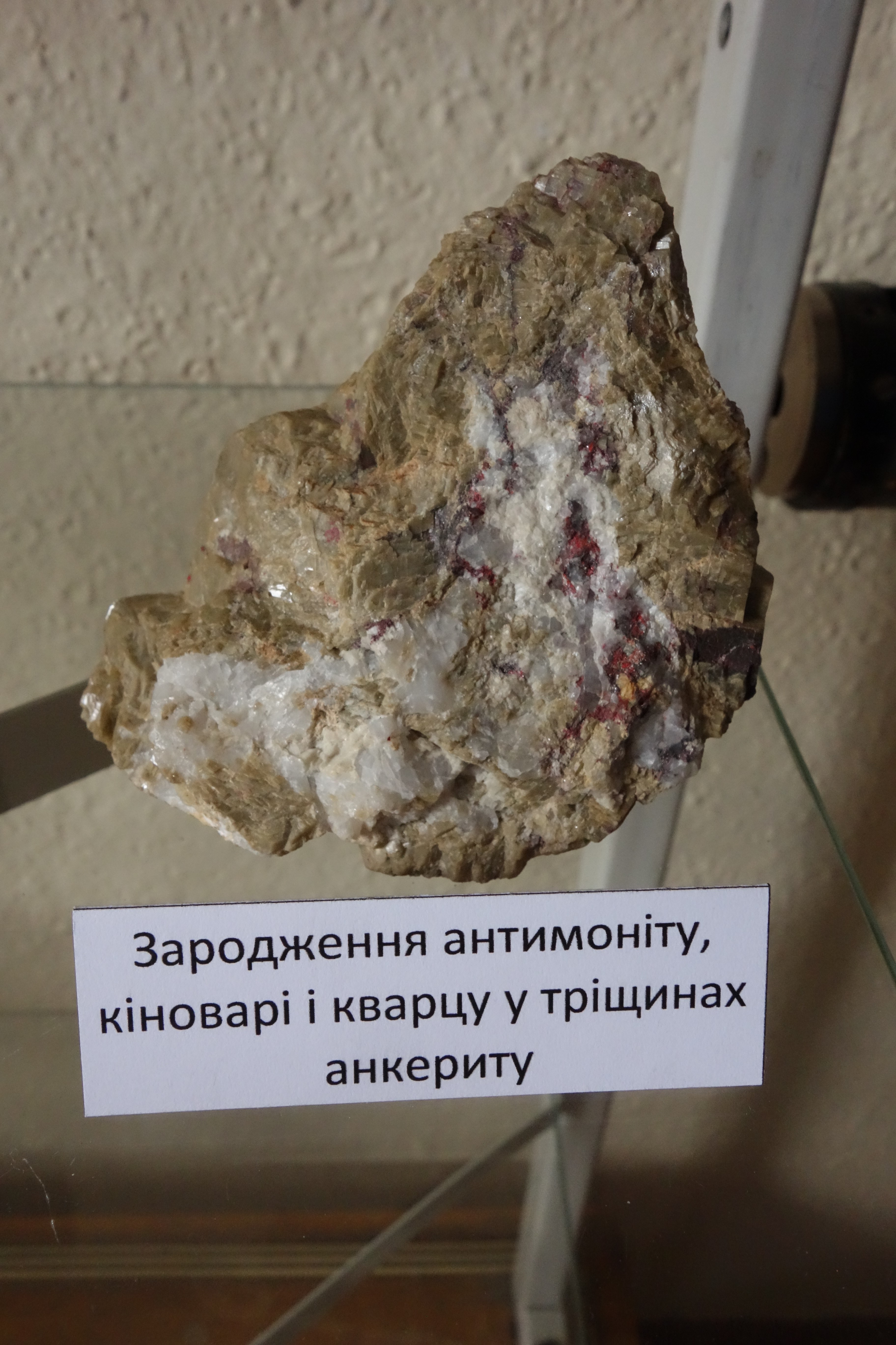 Зародження антимоніту, кіноварі й кварцу в тріщинах анкериту