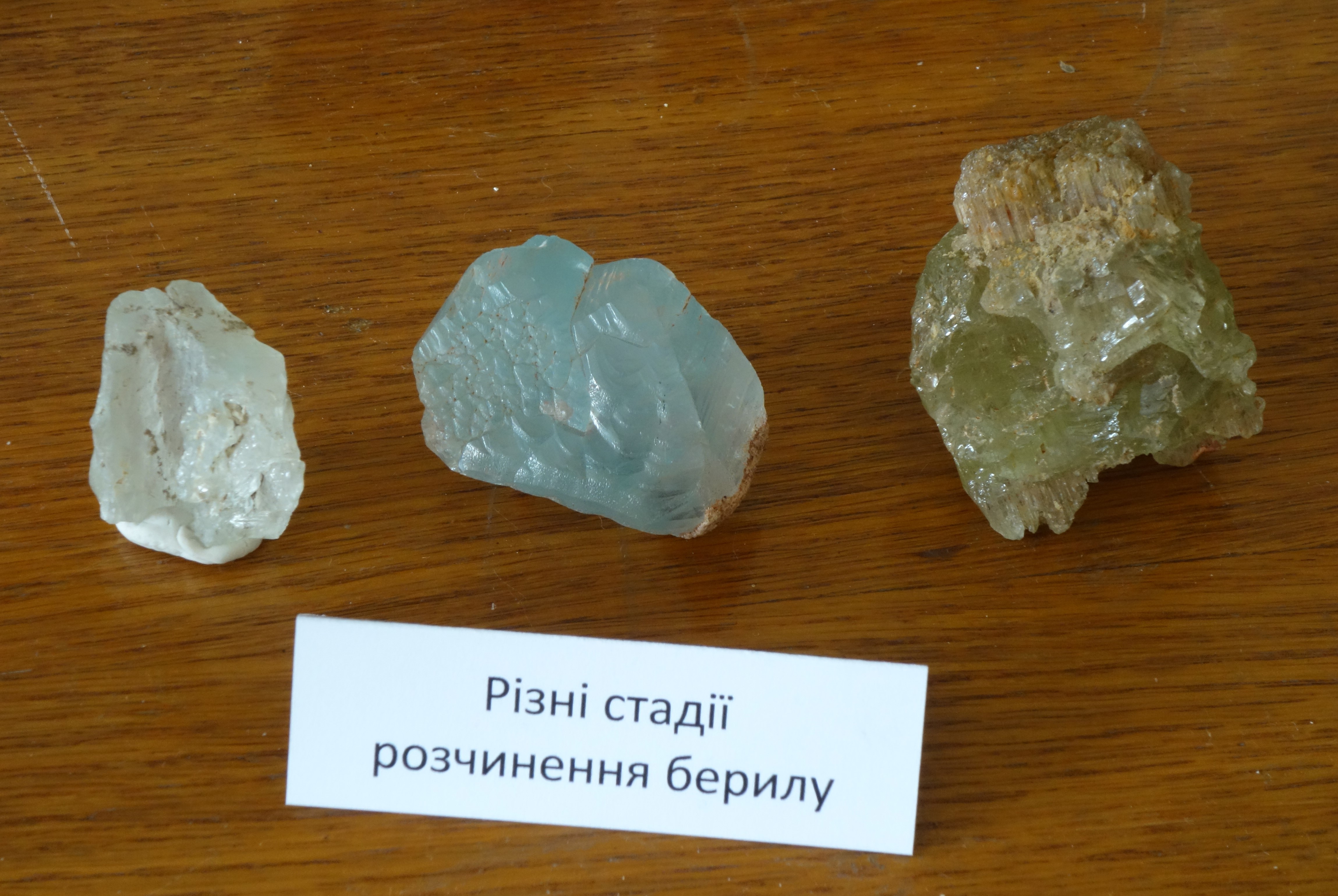 Різні стадії розчинення берилу